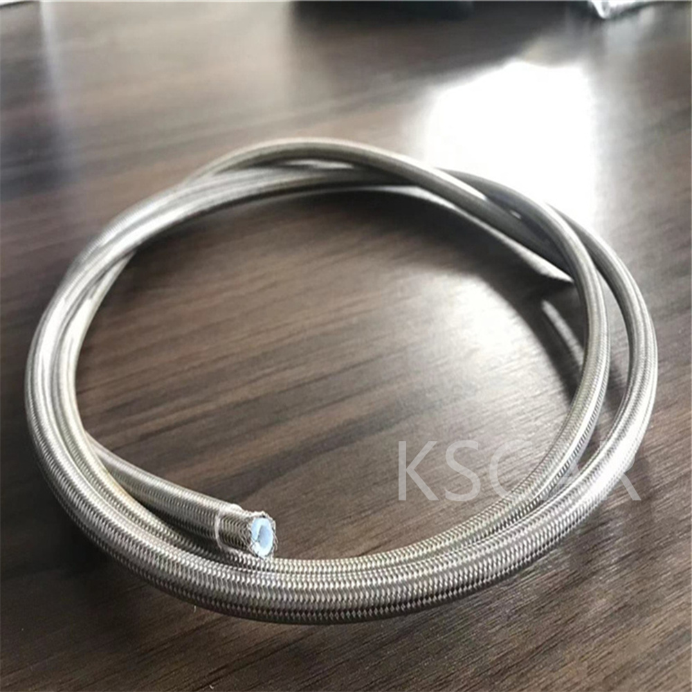 - 我们公司生产的不锈钢编织刹车制动钢喉油管是由优质 304 级不锈钢丝编织制成。使用 PTFE 内管,
